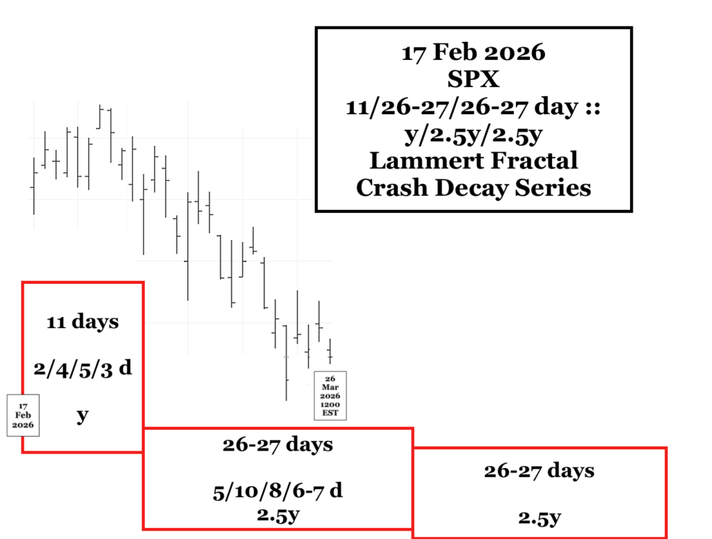 Unfortunately, and on many levels, the effects of ‘an uninitiated needless war’ and against the most important of international UN charter regulations will be unknown. The 11 day first decay fractal began on 17 Feb 2026. The Israeli-Trump war was not initiated until 28 Feb 2026