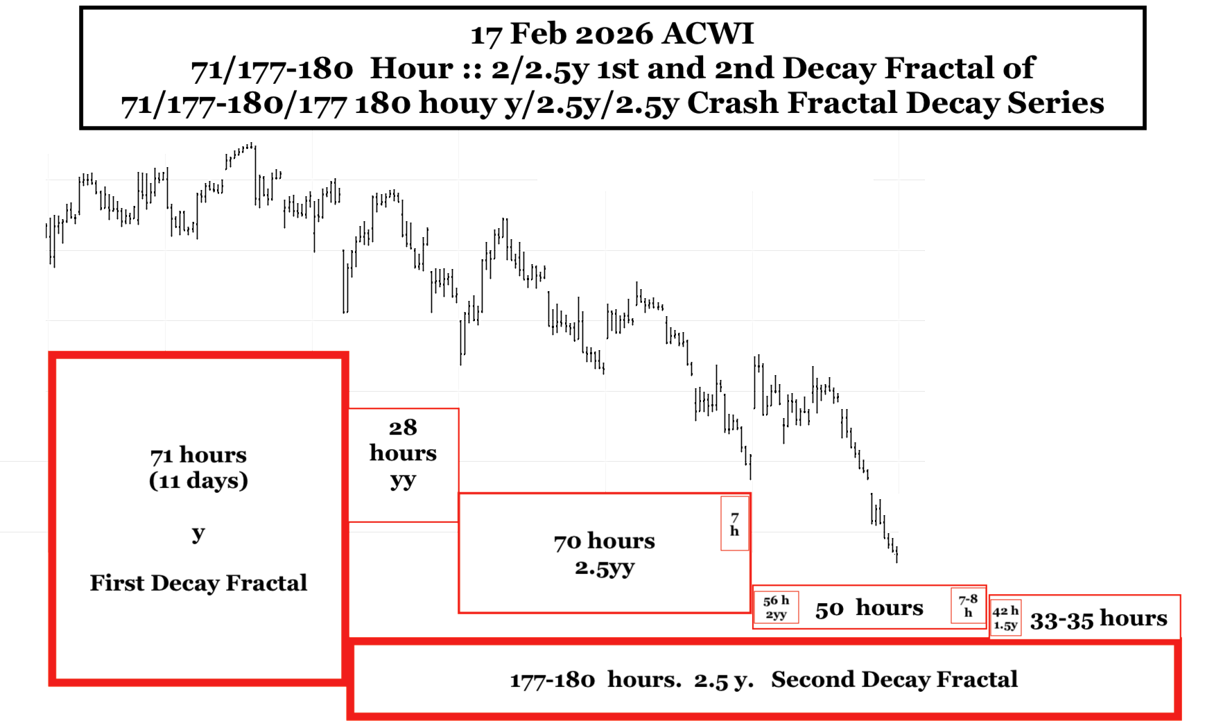 ACWI 17 Feb 2026 Hourly Fractals and the Hourly Fractal Series correlating to the 17 Feb 2026 11/26/27 day :: y/2.5y/2.5y Lammert 3-phase crash fractal decay series: