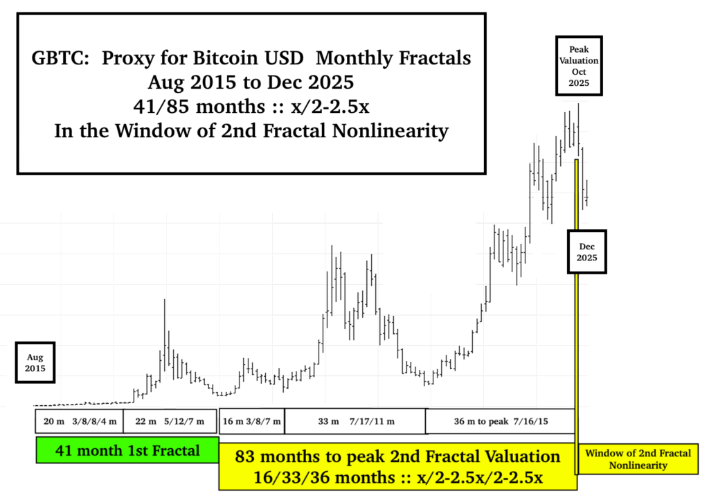 An alternative fractal interpretation is a 3-phase 7 April 2025 SPX: 34/69/83 day :: x/2x +1 day)/near 2.5x peak valuation on 26 December 2025 with the same decay crash fractal sequence.